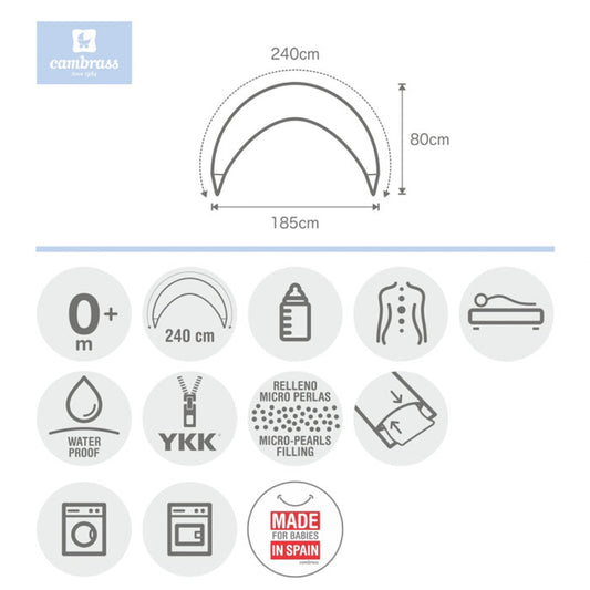 CAMBRASS - ALMOFADA DE AMAMENTAÇÃO LUNA 80x185x16 CM CÉU BEGE / CHUVA