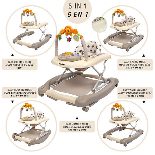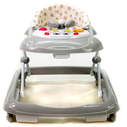 Centro de atividades para bebé com painel de brinquedos removível, com luzes, sons e diversas atividades idealizadas para a várias fases do crescimento do bebé.