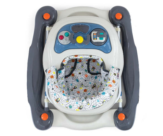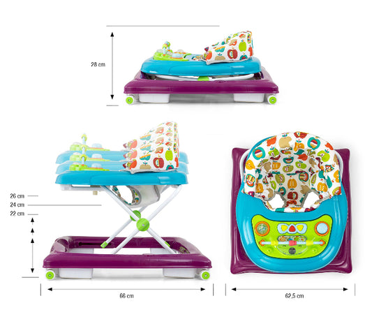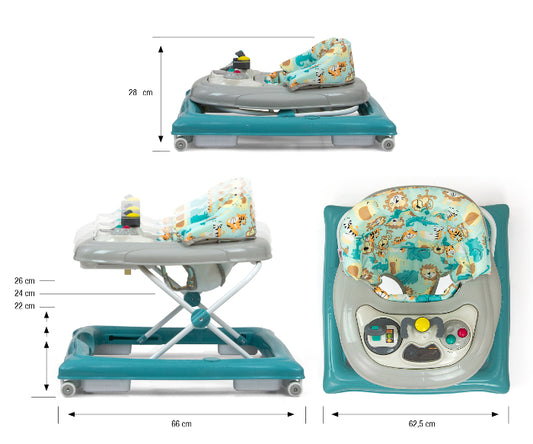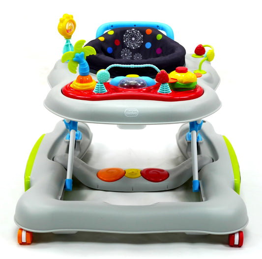 Centro de atividades para bebé com painel de brinquedos removível, com luzes, sons e diversas atividades idealizadas para a várias fases do crescimento do bebé.