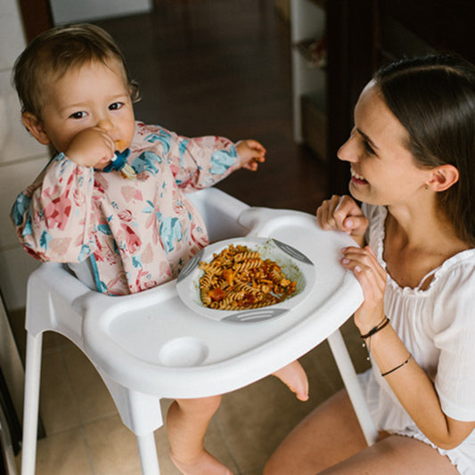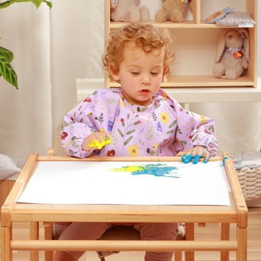 Babetes com mangas, plastificadas, em silicone ou algodão, com vários padrões e cores divertidas, para proteger a roupa do seu bebé.
