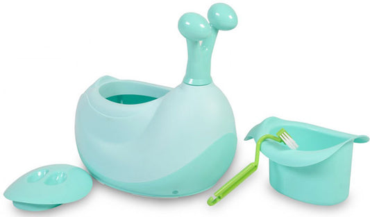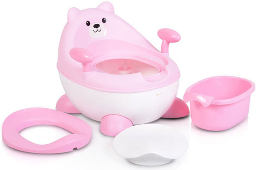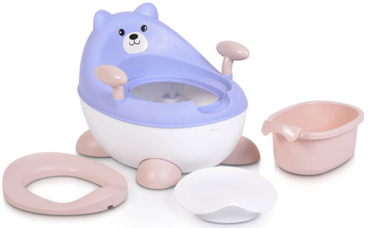 Bacios de bebé e sanitas musicais que servem como bacio, como cadeira, como redutor da sanita ou como degrau para o bebé chegar ao lavatório.