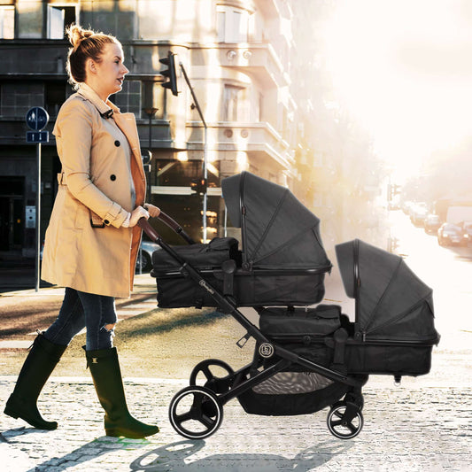 Carrinho de passeio para gémeos Conversível Duo Stroller Luiz Black Baninni