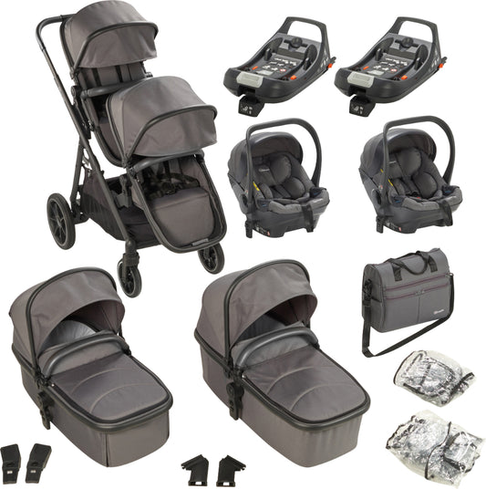 Carrinho De Gémeos 3 In 1 babyGO Twinner Set Grey