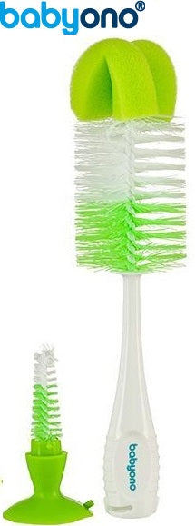 Baby Ono - Escova para biberões e tetinas com ventosa e mini escova retrátil verde
