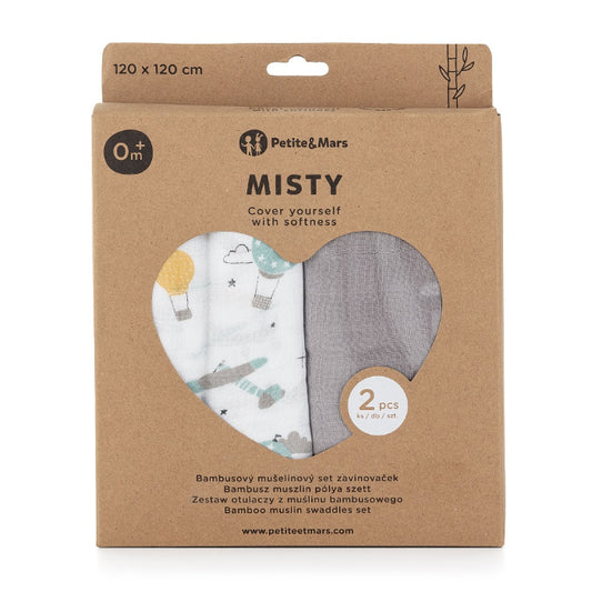 Fraldas de musselina de bambu Petite&Mars MISTY Grey Planes