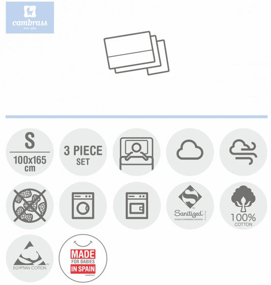 CAMBRASS - LENÇÓIS BERÇO 3 PCS 100x165 CM ASTRA CELESTE