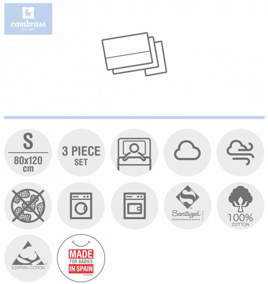 CAMBRASS - LENÇÓIS BERÇO 3 PCS 80x120 CM ASTRA AZUL