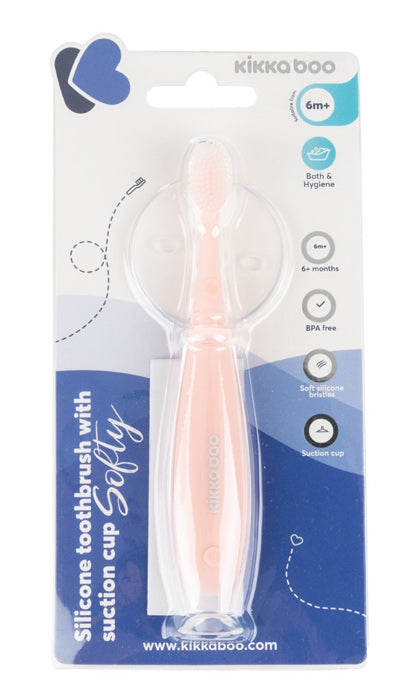 Escova de dentes em silicone com ventosa Kikka Boo Softy Rosa