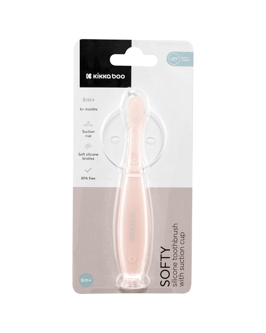 Escova de dentes em silicone com sucção rosa suave