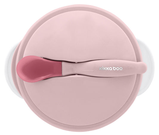 Tigela com ventosa e colher sensível ao calor Kikka Boo Rosa