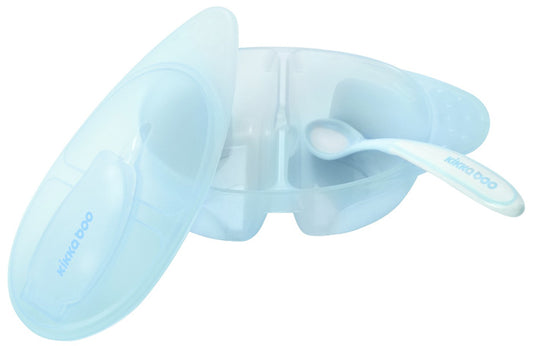 Tigela com dois compartimentos e colher Kikka Boo Tasty Azul
