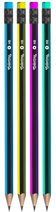 Blister 4 Lápis Hexa Neon HB c/ Borracha + Afia