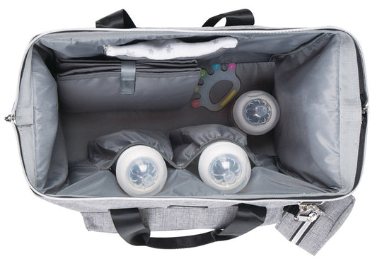 Práticos sacos de de bebé, modernos e cheio de estilo, com muitos bolsos para poder levar as suas coisas e as do seu bebé e que permitem guardar facilmente todos os objetos fundamentais do bebé e da mãe.
