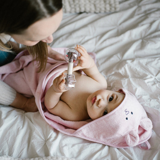 Toalha para o banho para bebé em tecido muito confortável, disponíveis em diversas cores e que asseguram a protecção natural do seu bebé.