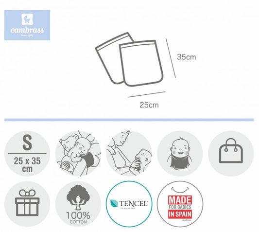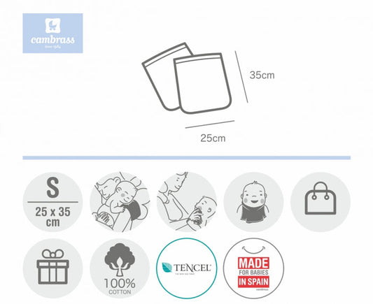 Toalhitas higiénicas que proporcionam absorção, suavidade e frescura ao seu bebé. Especialmente indicadas para secar as babas do bebé, para proteger a roupa do adulto ou para limpar o suor do bebé. Também são muito úteis para limpar a boquinha do bebé depois de comer.