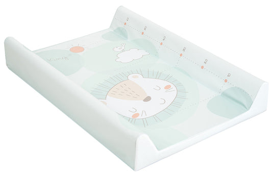 Colchão muda-fraldas de bebé em suave acolchoado em espuma, com rebordos de segurança acolchoados, para maior conforto e segurança do bebé na hora da mudança da fralda.