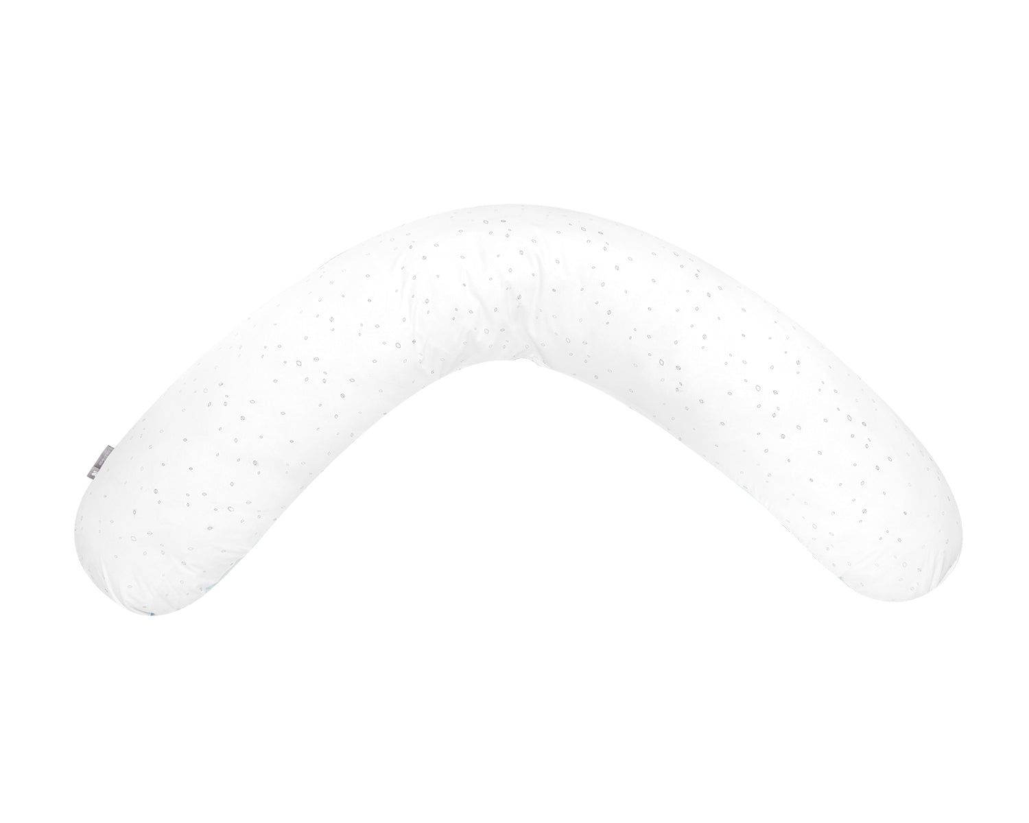 • Produto multifuncional: suporta a mãe durante a gravidez; pode ser utilizado para amamentar e ajudar o bebé após o parto; • Fabricado em algodão popelina de qualidade premium; • Enchimento: fibra de poliéster; • Materiais certificados OEKO-TEX; • Estojo removível com fecho; • Pode ser atado com tiras adicionais na parte inferior; • Vem numa bolsa de armazenamento resistente ao pó; • Comprimento: 150 cm; • Fabricado na UE. • Dimensões: - Bolsa de armazenamento: 40x66x18 cm / 1,83 kg - Caixa: 82x45x70 cm / 9,3 kg / 4 unidades/caixa
