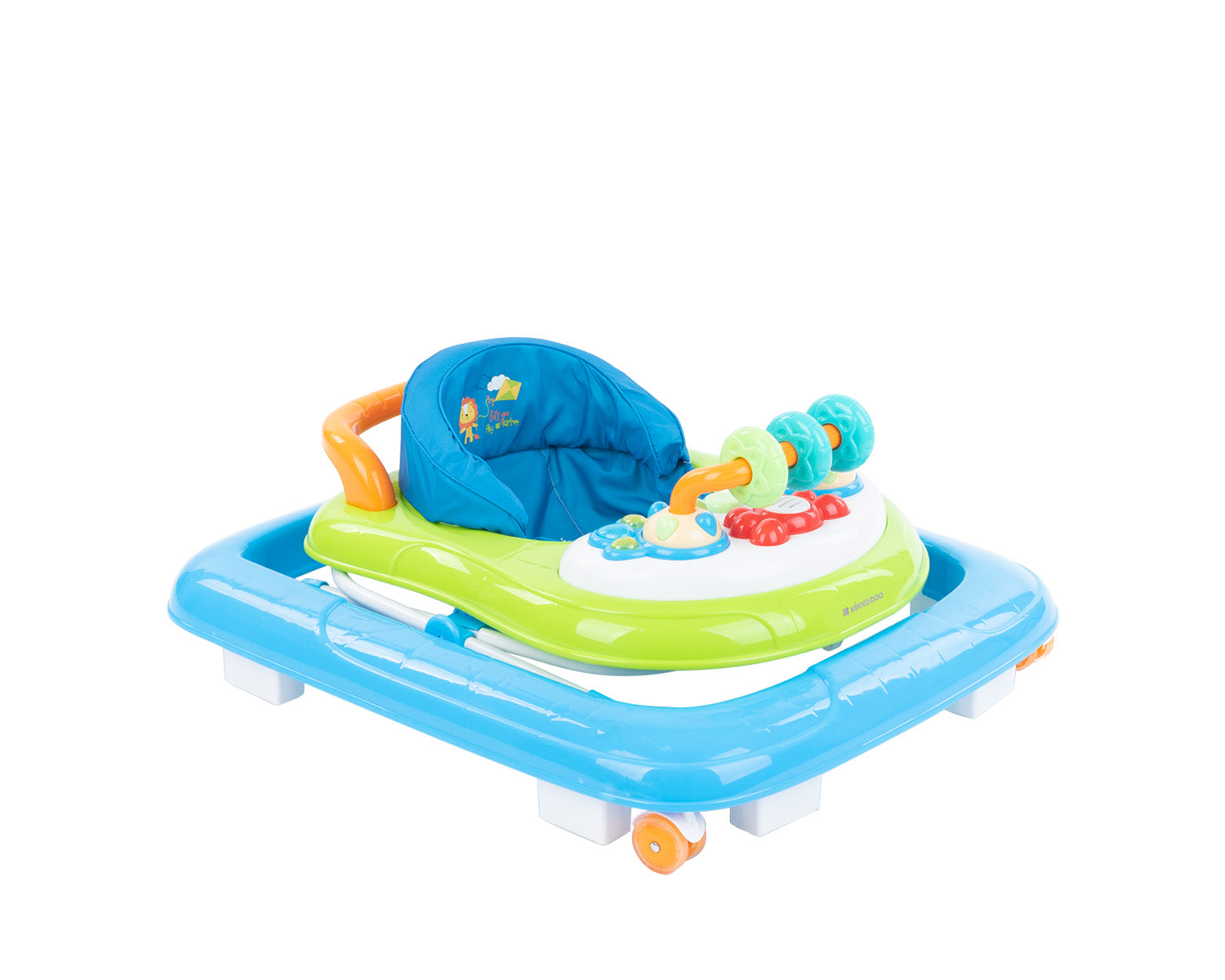 • Regulação da altura em 3 posições; • Bandeja musical interativa amovível com 12 melodias; • Luzes para atrair a atenção do bebé; • 2 rodas com rotação de 360 graus; • 2 rodas fixas; • Mecanismo de segurança - 6 batentes de borracha sob a base. Dimensões: - Produto: 54x63,5x75 cm / 3,7 kg - Caixa: 62,5x14x76 cm / 4,8 kg / 1 unidade/caixa