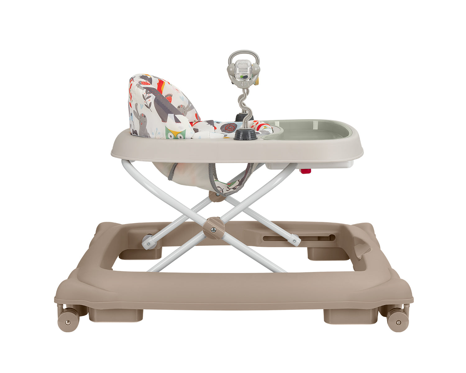 • Adequado dos 6 meses aos 12 kg; • Regulação da altura em 3 posições; • Assento macio com apoio alto para as costas; • Todas as rodas giram 360 graus; • Mecanismo de segurança - 8 batentes de borracha sob a base; • Dobrável; • Design divertido. Dimensões: - Produto: 70x62,5x56 cm / 3,6 kg - Caixa de cores: 63x11,5x71 cm / 4,5 kg / 1 peça/ caixa de cores