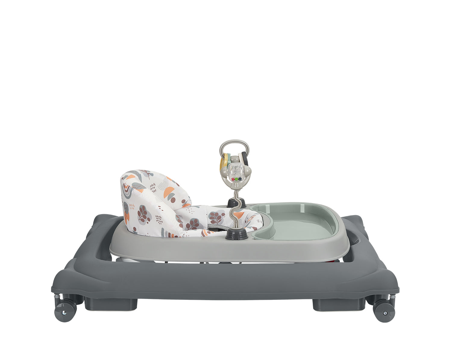 • Adequado dos 6 meses aos 12 kg; • Regulação da altura em 3 posições; • Assento macio com apoio alto para as costas; • Todas as rodas giram 360 graus; • Mecanismo de segurança - 8 batentes de borracha sob a base; • Dobrável; • Design divertido. Dimensões: - Produto: 70x62,5x56 cm / 3,6 kg - Caixa de cores: 63x11,5x71 cm / 4,5 kg / 1 peça/ caixa de cores