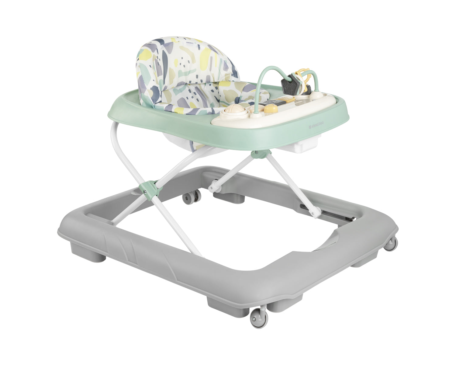 Adequado para crianças dos 6 meses aos 12 kg; Regulação da altura em 3 posições; Painel musical interativo amovível com mecanismos de bloqueio sob a base; Botão on/off; Assento macio com encosto alto; 2 rodas dianteiras universais em PP; 2 rodas traseiras direcionais em TPR; Mecanismo de segurança - 6 batentes de borracha sob a base; Design dobrável; Necessita de 2 pilhas AA para o painel musical (não incluídas no conjunto). Dimensões: - Produto: 67 x 60 x 53 cm / 3,4 kg - Caixa a cores: 59 x 11,5 x 69,5 cm / 4,5 kg / 1 peça/caixa a cores