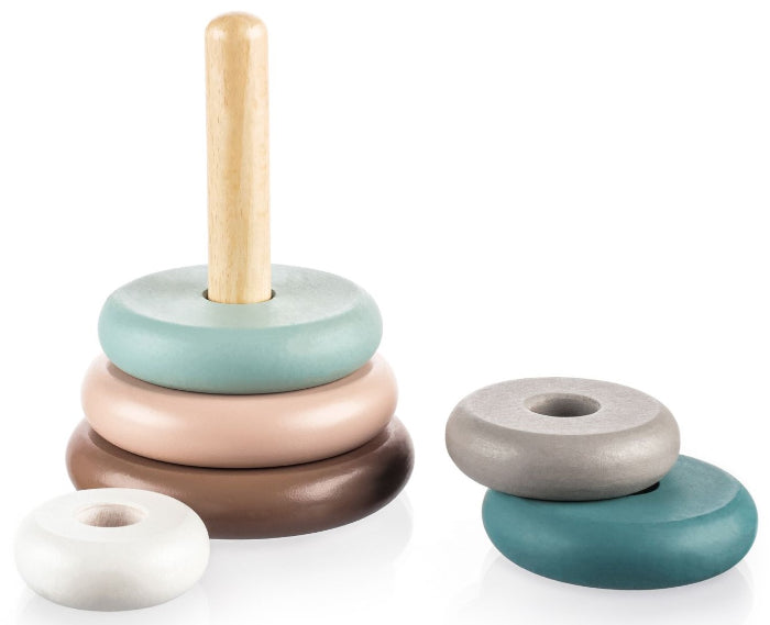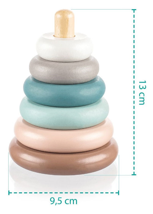 Montar, desmontar, classificar e dezenas de combinações diferentes - estes são anéis de madeira para exploradores curiosos. O conjunto é composto por 6 peças de tamanhos diferentes que podem ser empilhadas livremente. O brinquedo irá manter o seu filho entretido durante muito tempo, além de ajudá-lo a aprender novas habilidades, como cores, números e tamanhos. Os anéis ajudam a desenvolver habilidades motoras, coordenação e pensamento espacial. O brinquedo é feito de borracha natural e colorido com tintas à base de água. • Conjunto de 6 anéis coloridos • Dezenas de combinações diferentes • Desenvolve capacidades motoras, coordenação e pensamento espacial • Feito de borracha natural e tintas à base de água,. Informação do Fabricante: Zopa Design S.R.O.