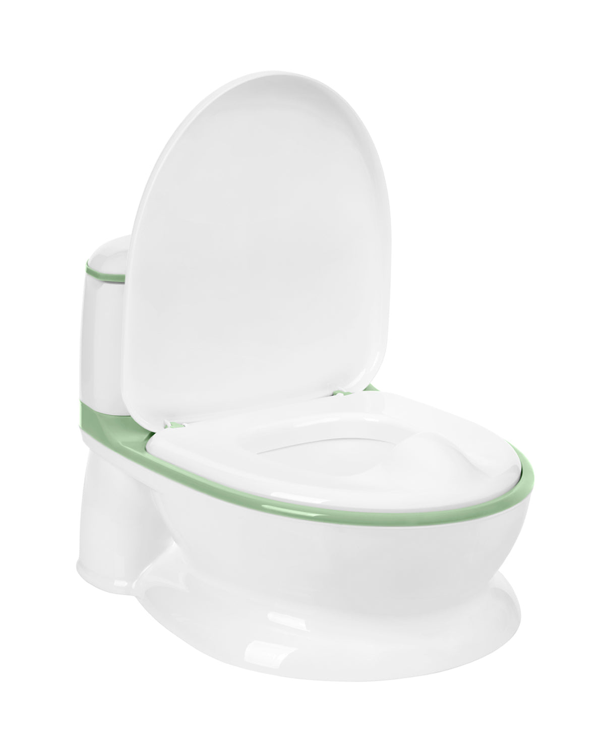 • Adequado de 12 a 36 m; • Materiais não tóxicos de elevada qualidade; • Design que faz lembrar uma casa de banho adulta de verdade; • Almofada de assento amovível; • Compartimento para papel higiénico; • Recipiente amovível para fácil limpeza; • Botão "Lavar" com som realista; • Base antiderrapante. Dimensões: - Produto: 44,3 x 30 x 30,8 cm / 1,85 kg - Caixa a cores: 44,5 x 19,5 x 30,5 cm / 2,2 kg - Caixa: 64 x 46,5 x 60,5 cm / 14,4 kg / 6 unidades/caixa