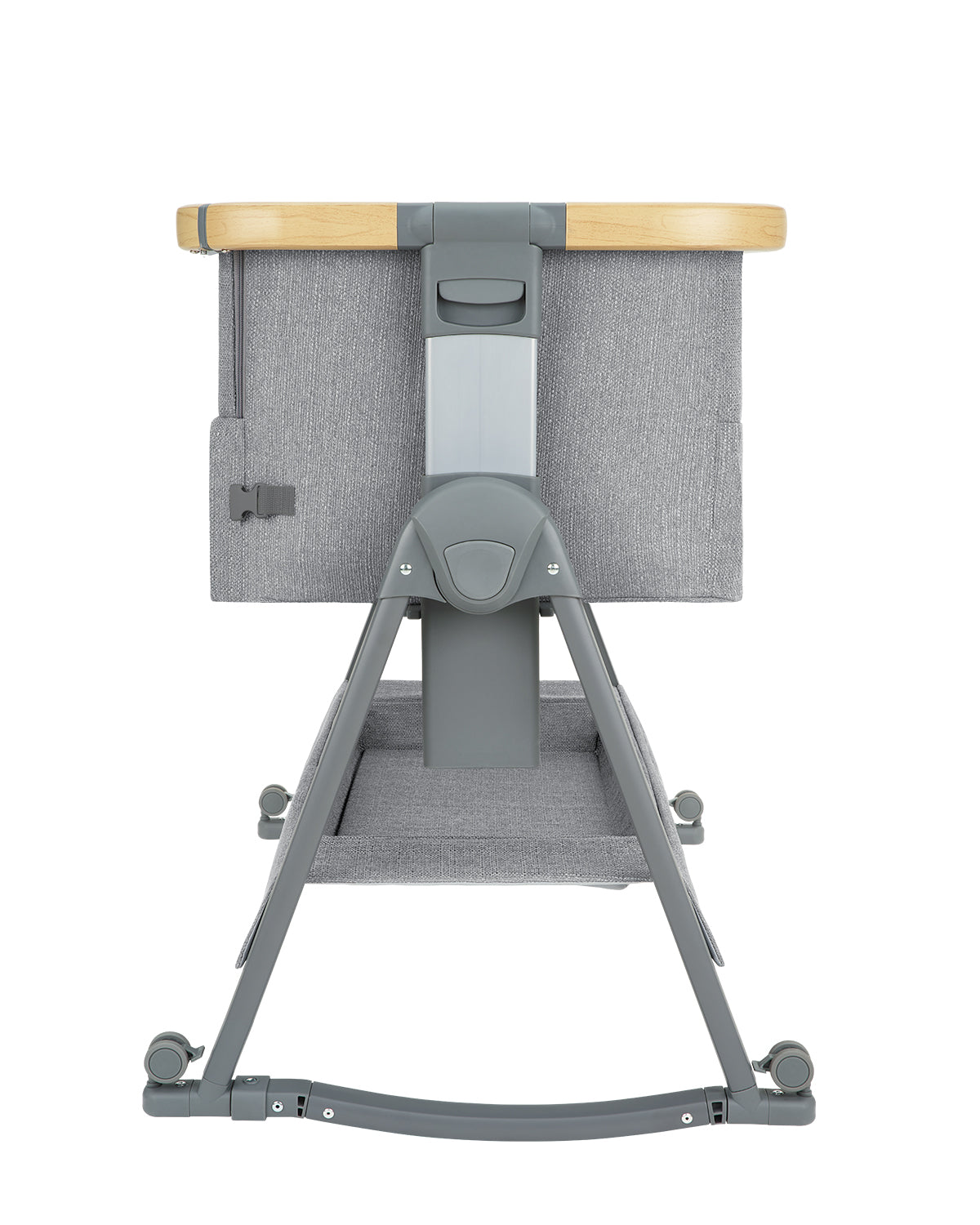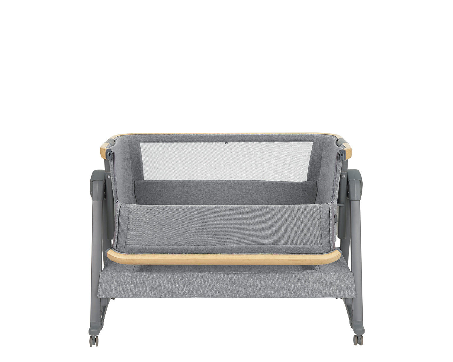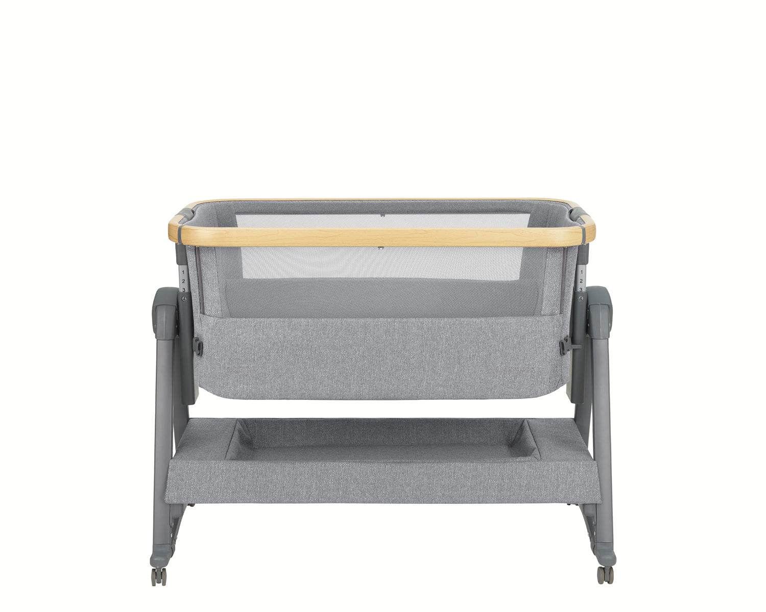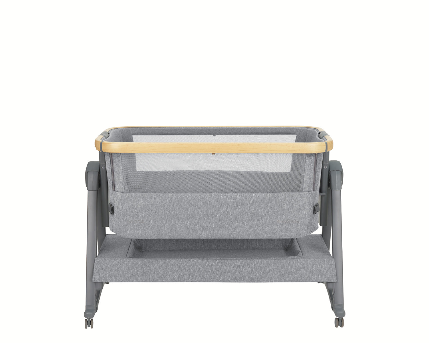 Adequado desde o nascimento até aos 6 meses, pesa até 9 kg; Berço de cabeceira que permite aos pais dormir perto do seu filho; Barras de baloiço com fecho para ajudar a acalmar o bebé e facilitar o sono; Estrutura leve em alumínio com revestimento em madeira; Regulação da altura em 7 posições; Posicionamento anti-refluxo; Rebatimento frontal; Janelas de tela em ambos os lados para melhor ventilação; Pega adicional para fixar o berço à cama dos pais; Colchão macio; 4 rodas com travões; Cesta de armazenamento; Mosquiteiro; Bolsa de transporte incluída. Dimensões: - Produto: 48x100x69-81 cm / 12,5 kg - Caixa: 96x59x18 cm / 14,2 kg / 1 unidade/caixa