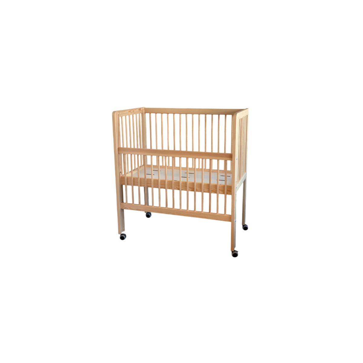 Berço elevado para facilitar os movimentos dos pais. Tamanho ideal para economizar espaço e adequado para os mais pequenos.
