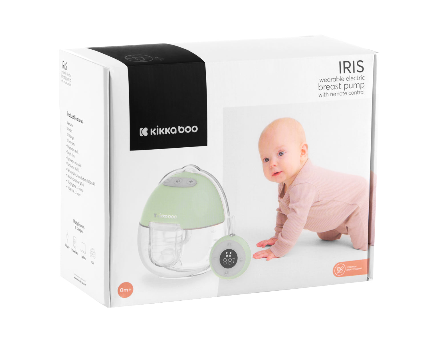 Dois modos: Modo de massagem e Modo de expressão com 9 níveis de sucção; Design mãos-livres; Portátil e fácil de limpar; Leve e silencioso; Bateria de lítio recarregável de 1000 mAh; Recipiente reutilizável - capacidade de 180 ml; Tempo de carregamento - 2,5 horas Tempo de trabalho - 1,5 horas; Função de memória; Proteção antirrefluxo; Fabricado em ABS, silicone e PP; Cada conjunto inclui: bomba de extração de leite, comando à distância, recipiente de leite reutilizável, cabo USB tipo C, diafragma de silicone (1 unid.), protetor de peito de silicone (24 mm) (1 unid.), válvula (1 unid.), 3 inserções (18, 20, 21 mm) e ajustador de fecho. Dimensões:- Produto: 12,9x11,4x6,7 cm / 0,235 kg- Caixa a cores: 18x14,5x8 cm / 0,558 kg- Caixa: 34,5x38x61,5 cm / 18,7 kg / 32 unidades/caixa