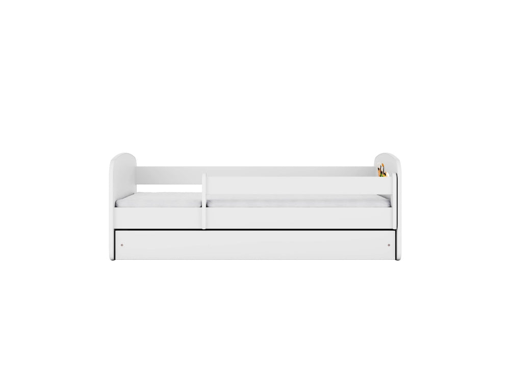 A cama de solteiro com gradeamento é fabricada em painel de mobiliário de alta qualidade com 18 mm de espessura. Está disponível em vários tamanhos e opções de cores.