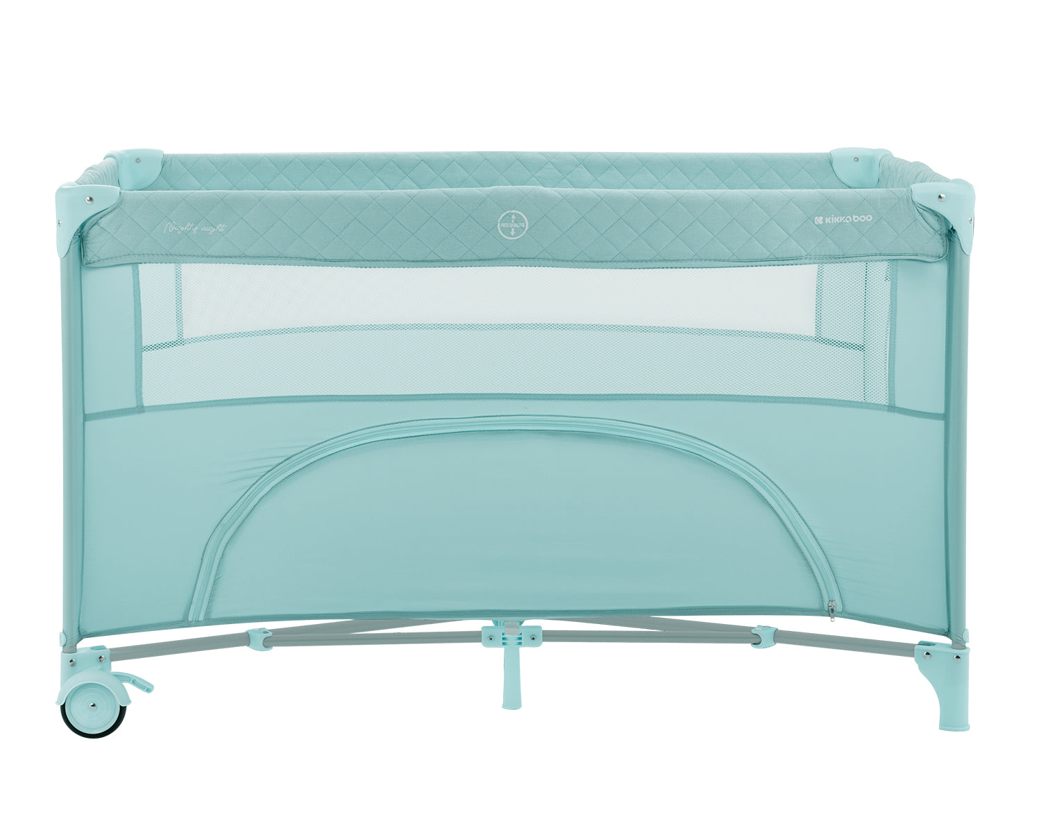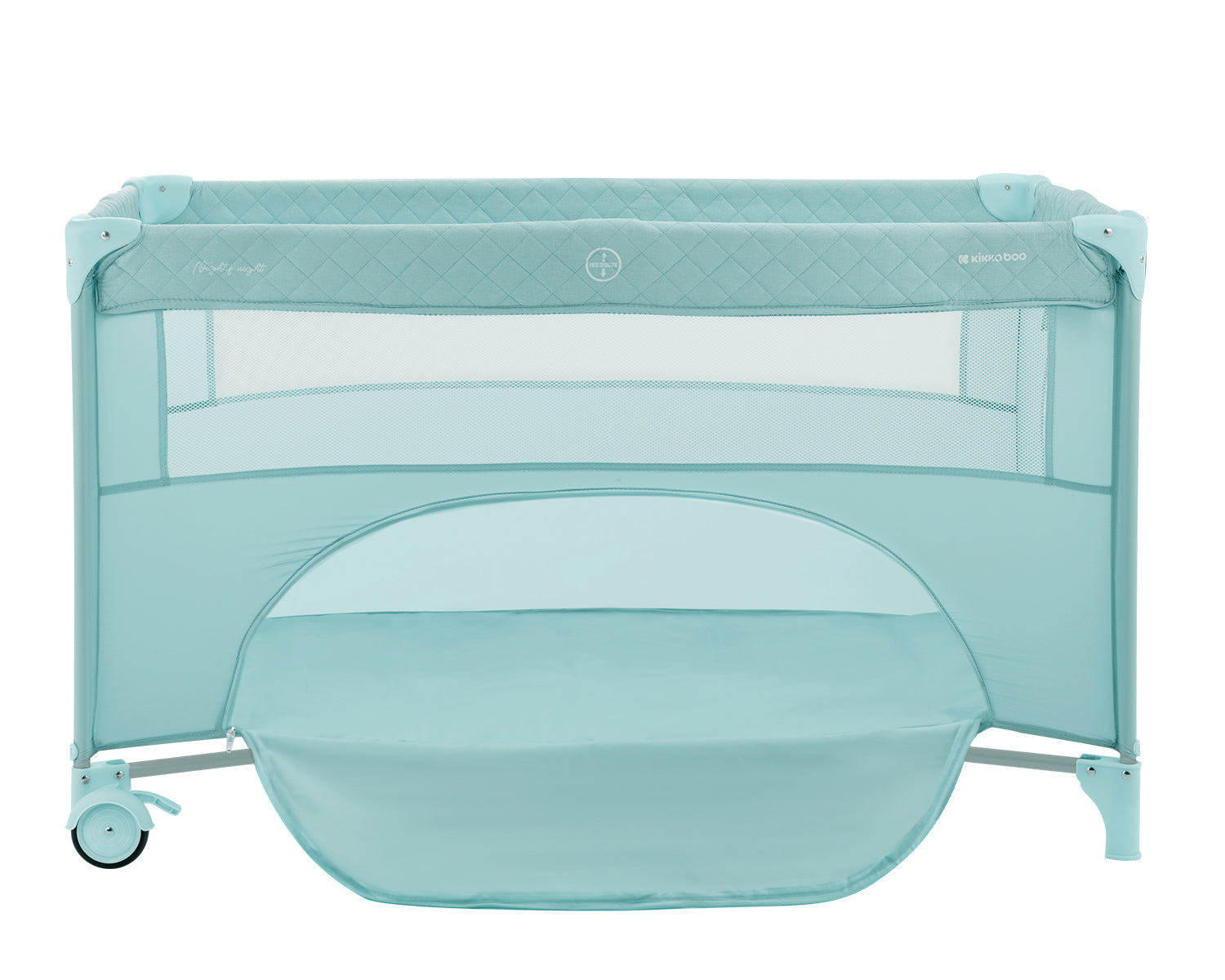 Segundo nível: Adequado dos 0 aos 6 meses, pesando até 9 kg; Primeiro nível: Adequado dos 6 aos 36 meses, pesando até 15 kg; Barra de brinquedos musical; Janelas de tela para melhor ventilação; Abertura frontal com fecho; Colchão macio; 2 rodas com travões para fácil movimentação; Trocador removível; Bolsa para acessórios. Dimensões: - Produto: 72x124x74,5-110 cm / 9,7 kg - Caixa: 77,7x22,5x22 cm / 10,2 kg / 1 unidade/caixa