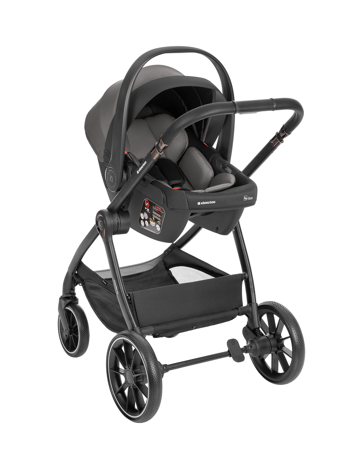 Carrinho de bebé: Adequado desde o nascimento até aos 22 kg; Estrutura leve em alumínio com sistema de dobragem rápido e fácil; Assento virado para trás e para a frente com botões de memória para uma libertação mais fácil; Pega de empurrar em pele ajustável em 4 posições; Capota extensível com para-sol e janela de visualização; Barra de proteção em pele removível; Sistema de cinto de segurança de 5 pontos com ombreiras e fivelas inferiores; Rodas dianteiras giratórias de 360 graus com mecanismo de bloqueio; Suspensão incorporada nas rodas; Travão de um toque; Assento reclinável ajustável em 3 posições; Apoio para os pés ajustável em 4 posições;€¢ Tecidos impermeáveis com UPF50+;• Testado de acordo com a EN 1888-2:2018+A1:2022 SGS Standards Technical Services. Alcofa: Colchão macio; Capuz extensível, guarda-sol e janela; Abertura em rede para melhor ventilação; Testado de acordo com a norma EN 1466:2023 pela SGS Standards Technical Services. Cadeira auto: i-SIZE (40-87 cm); Adequado para crianças dos 40 aos 87 cm viradas para trás; Pega de transporte ergonómica e multiposições; Apoio de cabeça regulável em 7 posições; Capuz ajustável; Arnês regulável em altura em 7 níveis; Sistema de arnês de 3 pontos com ombreiras e capas de fivela inferior; Ajuste do cinto de segurança com uma mão;€¢ Almofada de apoio macia para todo o corpo;• Estofo amovível e fácil de limpar;• Testado de acordo com o Regulamento da ONU n.º R129/03 pela TÜV SÜD. Acessórios incluídos: Saco para os pés na unidade do assento e na alcofa, adaptadores, bolsa para a mamã. Dimensões: - Carrinho de passeio: 99x59x103,5-109,5 cm / Dobrado: 32x59x74 cm / 10 kg - Alcofa: 82x39x63 cm / 4,9 kg - Cadeira auto: 69-70x35,5x58 cm / 3,6 kg - Caixa: 82x52x55 cm / 21 kg / 1 conjunto/caixa