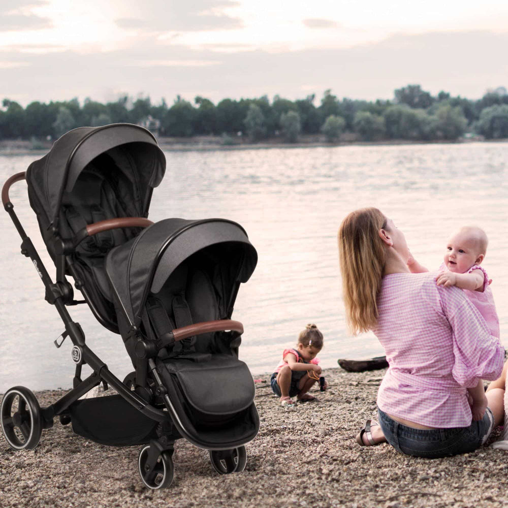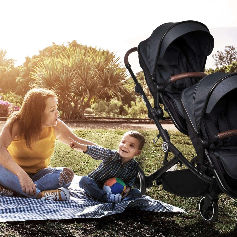 A caminho com o carrinho para irmãos Twiner da babyGO