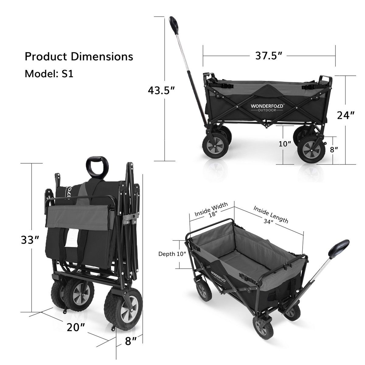 Carrinho dobrável utilitário para exterior com suporte próprio