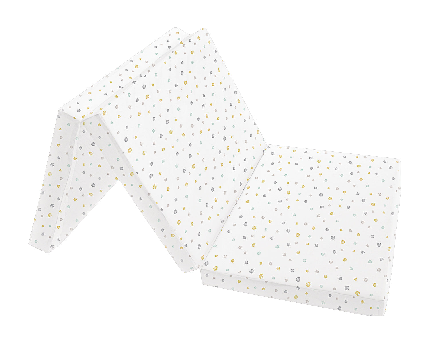 • Colchão macio e hipoalergénico para bebés; • Fabricado em algodão premium; • Enchimento de espuma densa e macia que se adapta perfeitamente ao formato do corpo do bebé; • Design dobrável, perfeito para viagens; • Capa amovível com fecho para facilitar a lavagem e manutenção; Materiais cuidadosamente selecionados para um sono tranquilo e o máximo conforto; Estampado divertido de designer; Capa: 100% algodão respirável; Enchimento: 100% espuma de poliuretano; Vem numa bolsa de armazenamento resistente ao pó, adequada para transportar e armazenar em casa. Dimensões: - Produto: 60x120x5 cm - Bolsa de armazenamento: 40x60x18 cm / 1,08 kg - Caixa: 90x85x62 cm / 13,7 kg / 10 unidades/caixa