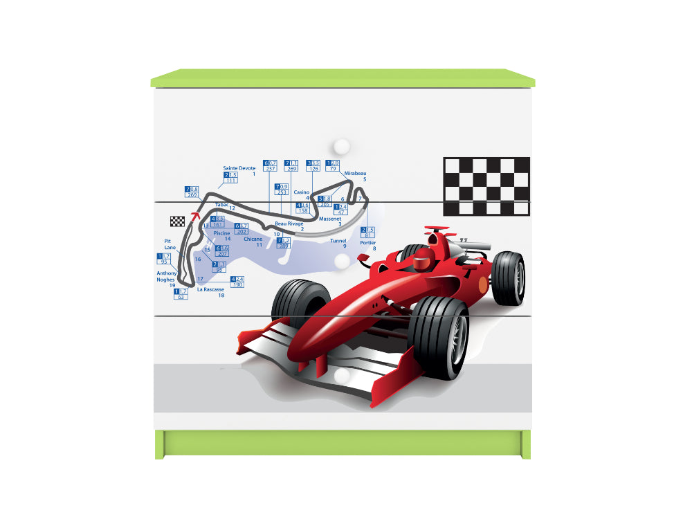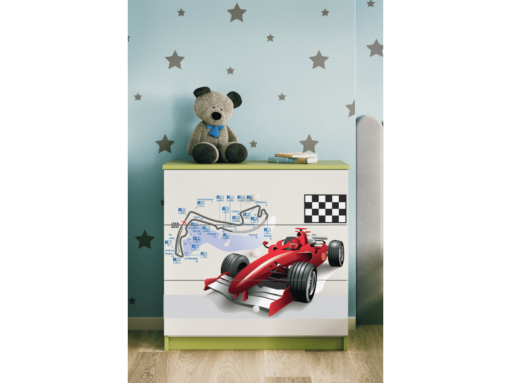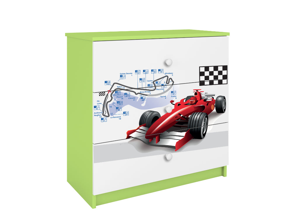 A cómoda é fabricada em painel de mobiliário laminado de alta qualidade com 18 mm de espessura. Tem 3 gavetas espaçosas com uma profundidade de 34 cm. Estão montadas em corrediças de rolos que permitem uma utilização fácil.