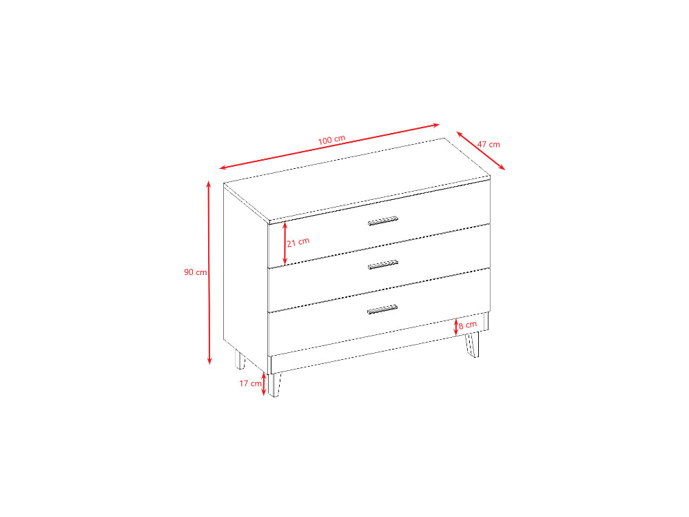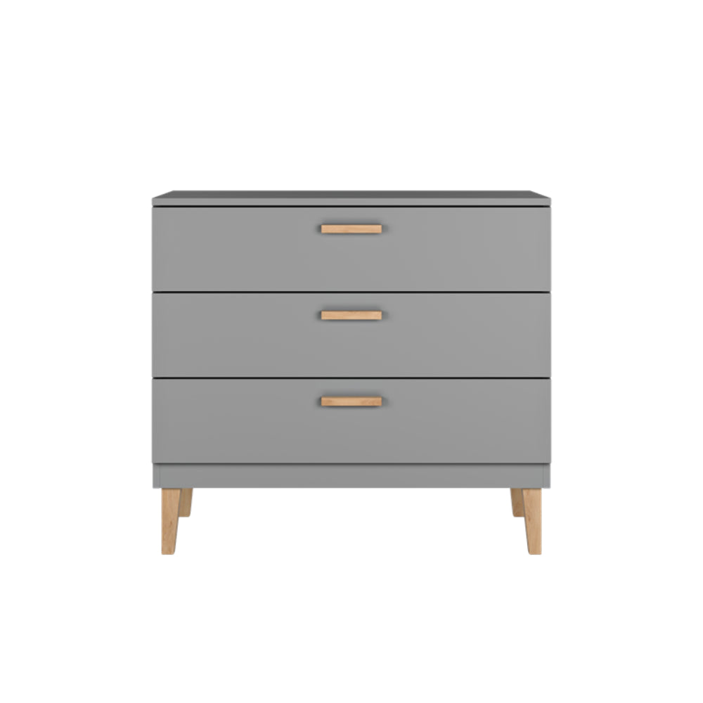 Tem três gavetas espaçosas que ajudam a manter a ordem no quarto da criança.