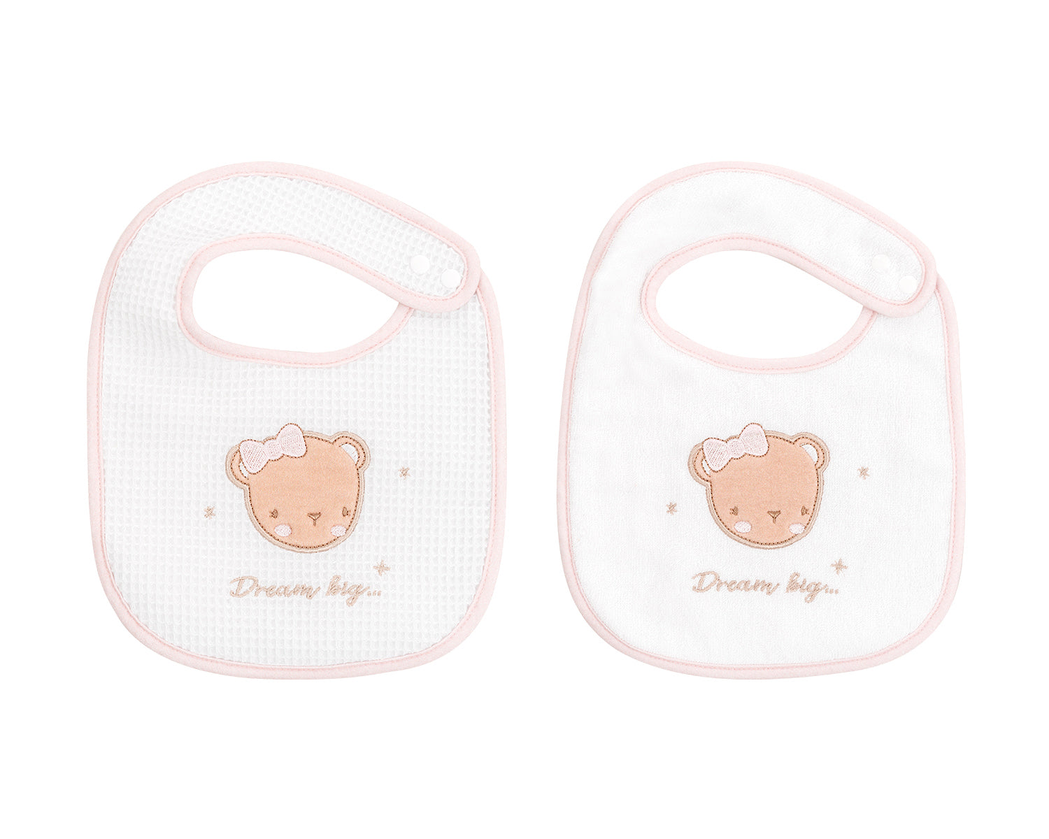 Conjunto de 2 babetes Dream Big Pink em tecido turco e piqué
