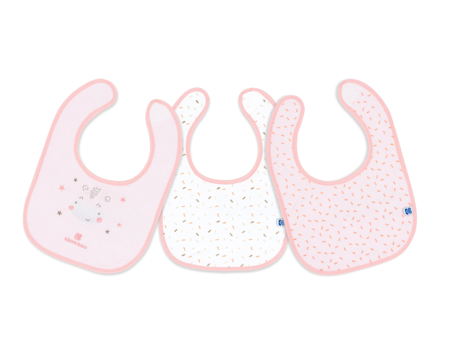 Conjunto de 3 babetes Hippo Dreams em tecido turco rosa