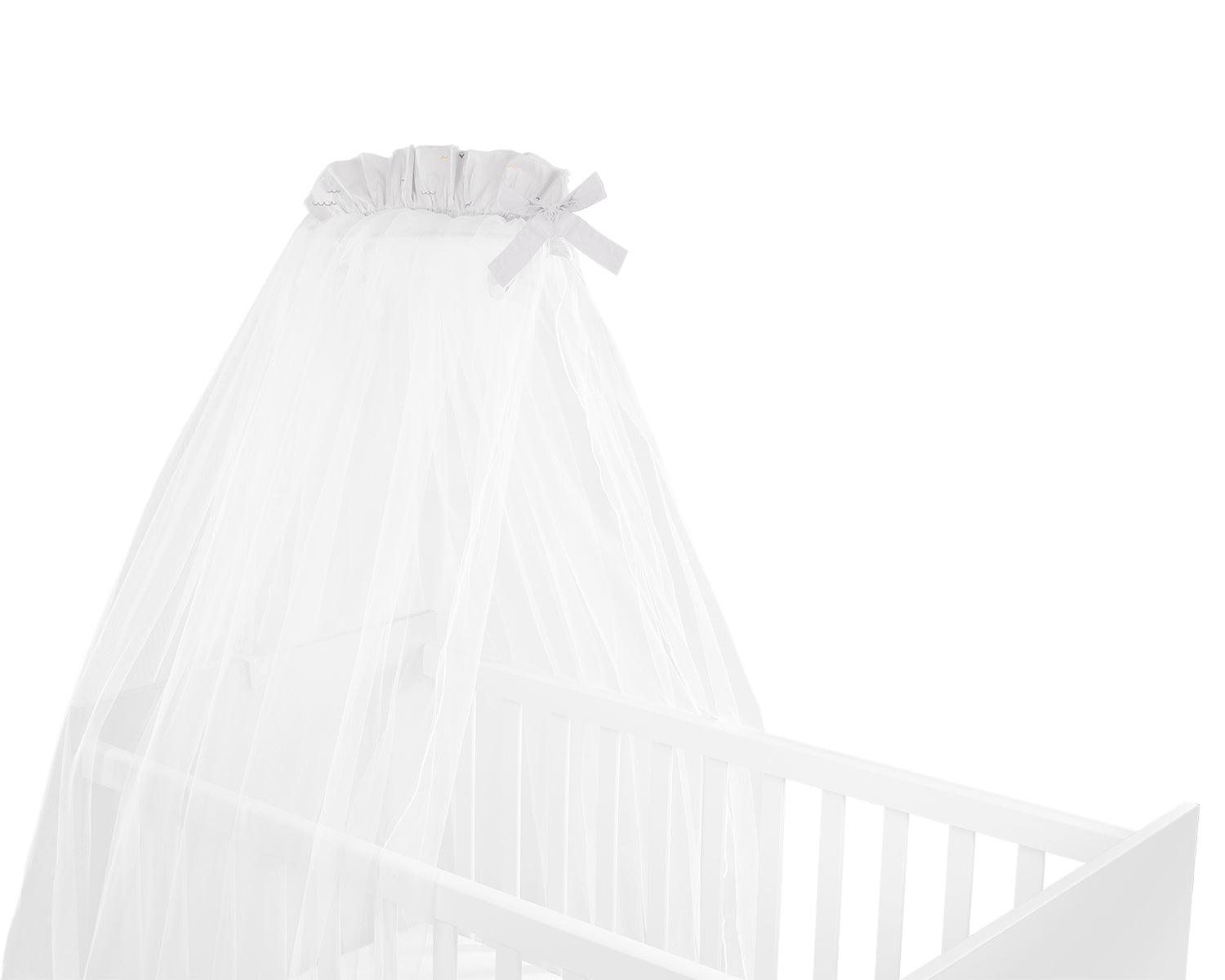 • Capota mosquiteira macia fabricada em tule de alta qualidade; • Protege o bebé do pó e dos insetos durante o sono; • Fácil fixação dupla face; • Decoração colorida na parte superior; • Tecidos com certificação OEKO-TEX; • Embalagem em caixa de oferta de elevada qualidade; • Tamanho: 200x540 cm; • Fabricado na UE. • Dimensões: - Caixa de oferta: 28,5x25,5x5 cm / 0,34 kg - Caixa: 60x40x30 cm / 5,68 kg / 14 unidades/caixa