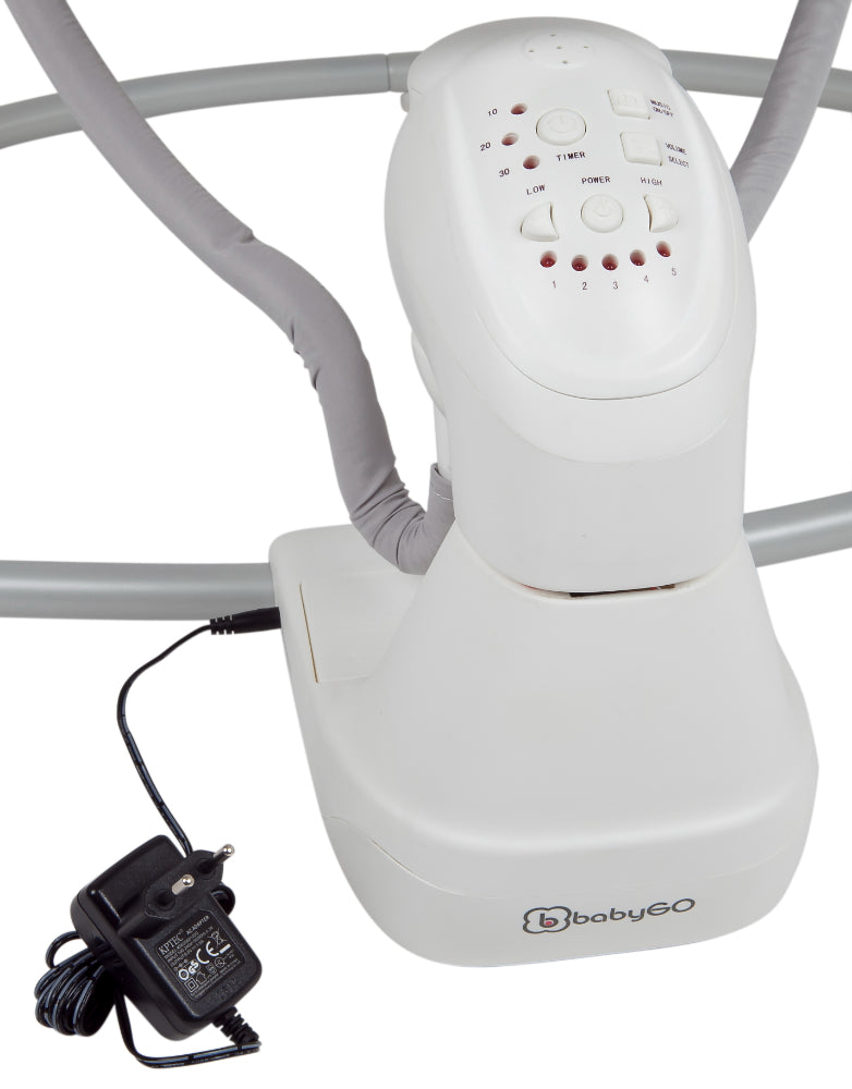 A espreguiçadeira tem quatro velocidades de vibração e pode ser regulada individualmente através de uma função de temporizador em intervalos de 10, 20 e 30 minutos. A experiência de baloiçar é ainda mais divertida com as várias e agradáveis melodias e sons da natureza. A espreguiçadeira Cuddly da babyGO está disponível em cinzento, bege e antracite.