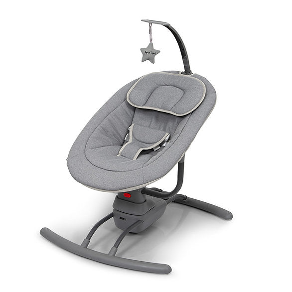 O bebé relaxa totalmente no baloiço Sereno da Baninni. O baloiço para bebé cinzento-escuro faz movimentos de um lado para o outro e tem um assento confortável, tudo à medida do bebé. Esta cadeira reclinável para bebés Sereno tem 3 velocidades e uma função de música ajustável com várias melodias para manter o bebé entretido. O baloiço Sereno possui um arco de jogo com um brinquedo macio. O assento cinzento escuro está equipado com um cinto de segurança e uma almofada de cabeça amovível. O baloiço Sereno é adequado desde o nascimento até um máximo de 9 kg. 9 kg. O Sereno pode ser utilizado com o adaptador fornecido ou com pilhas (não incluídas) e pode ser operado com o controlo remoto.