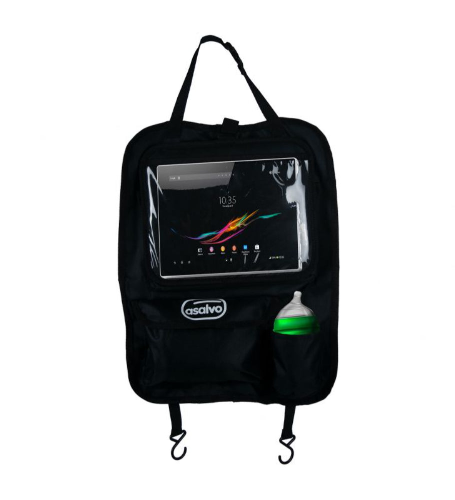 Todos os seus objetos estarão sempre arrumados e à mão graças ao organizador Asalvo. Graças à sua instalação rápida, estará pronto a ser utilizado em apenas alguns minutos. Também tem um suporte para tablet, para que o seu filho possa ver os seus desenhos animados favoritos enquanto viaja no carro. Aumente o espaço de arrumação do seu veículo. Suporte para tablet integrado e amovível. Adapta-se a todos os tipos de bancos. Fácil de limpar. Grande superfície de proteção. Material duradouro. Instalação rápida e fácil.