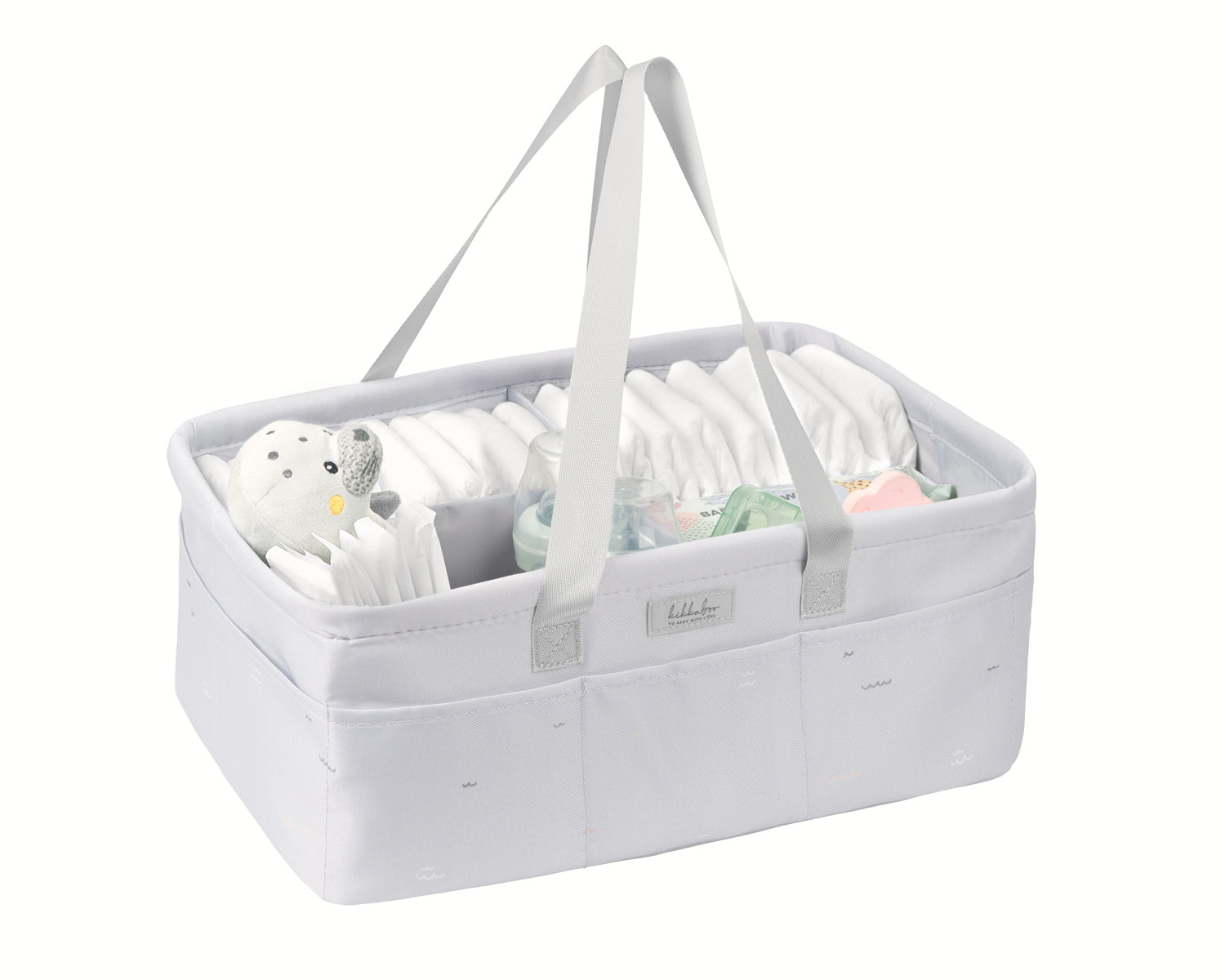 Organizador de fraldas portátil com vários compartimentos para muda-fraldas e outros acessórios para bebés; Alças compridas para fácil transporte; Perfeito para viagens e para usar em casa; As divisórias amovíveis permitem utilizar um compartimento grande e duas secções mais pequenas ou apenas um compartimento; Design compacto e dobrável; Bolsos pequenos adicionais à volta do organizador; Materiais com certificação OEKO-TEX; Estampado de design elegante; 100% poliéster; Dimensões: 42x27x17 cm. Dimensões: - Bolsa de armazenamento: 42x27x4 cm / 0,33 kg - Caixa: 58x44x59 cm / 18 kg / 50 unidades/caixa 58x44x59 cm / 18,67 kg / 50 unidades/caixa