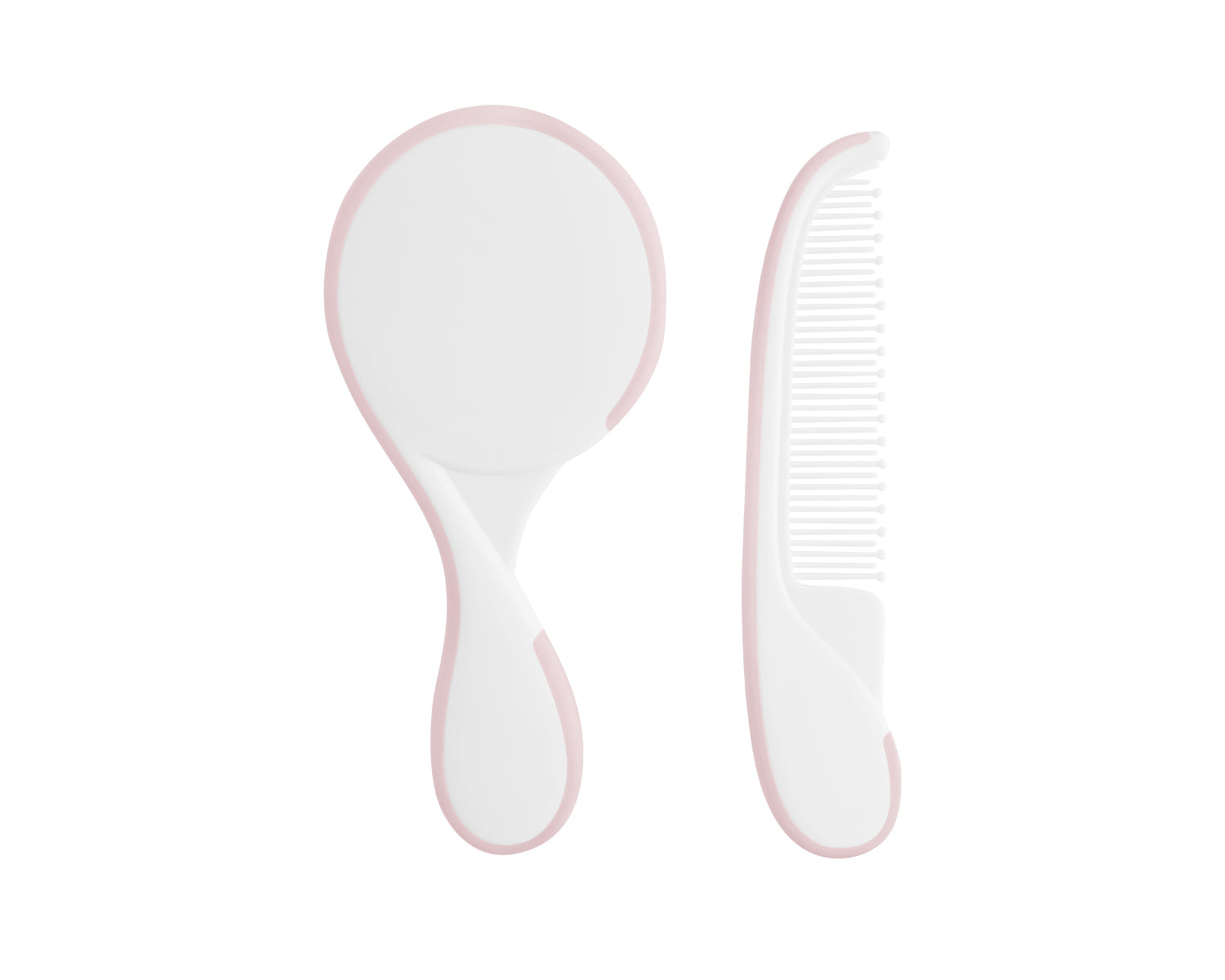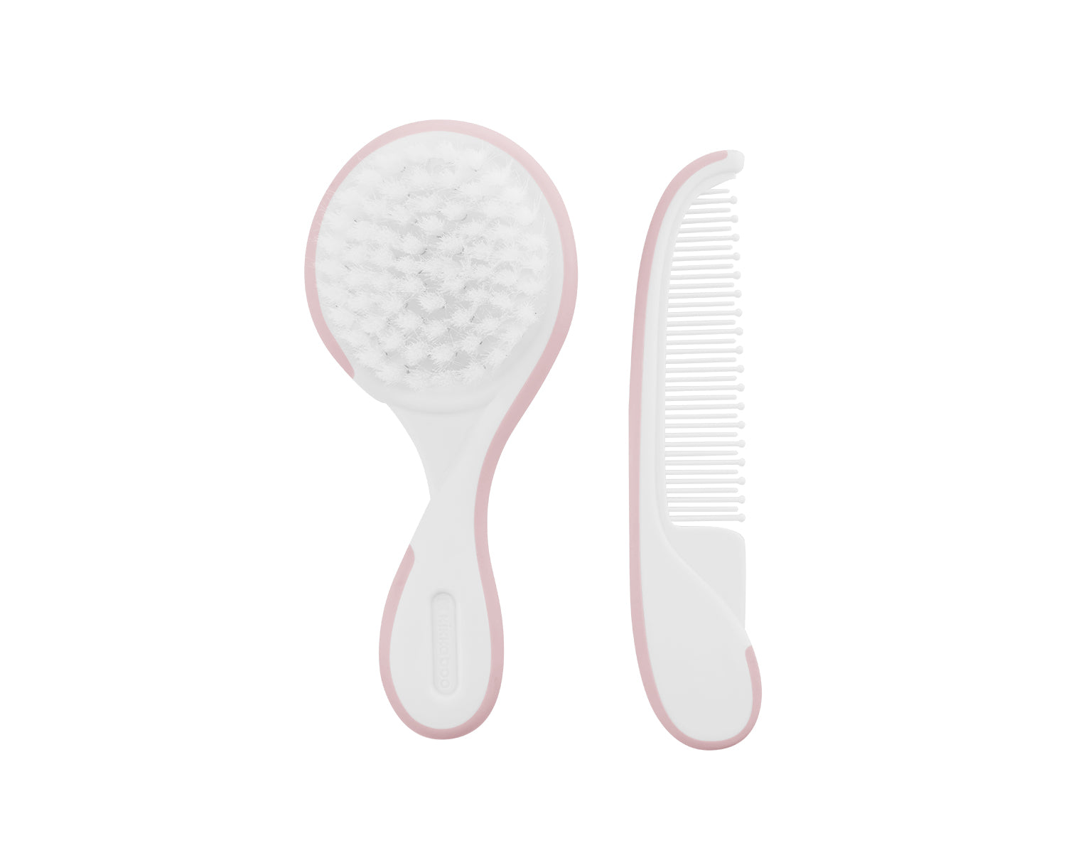Adequado para crianças a partir dos 0 m+; Pente e escova, concebidos para facilitar o cuidado diário do cabelo; Escova com cerdas macias; Pente com pontas arredondadas; Com pegas antiderrapantes; Livre de BPA. Dimensões: - Pente: 14,7x3,2x0,75 cm / 0,013 kg - Escova: 15,1x6,5x3,2 cm / 0,048 kg - Cartão blister: 14,7x22x3,5 cm / 0,083 kg - Caixa interior: 30x25x16 cm / 1,2 kg / 12 peças/caixa interior - Caixa: 52x31,5x51 cm / 7,61 kg / 72 unid./caixa