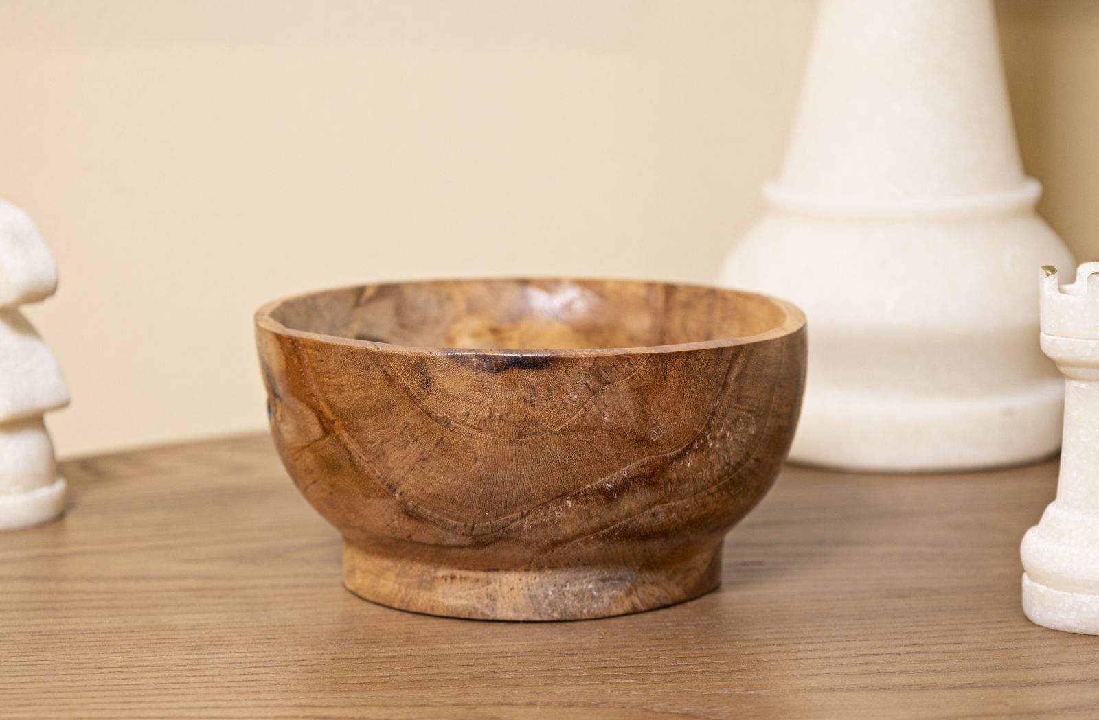 Peça decorativa em teca reciclada. Cada peça é única, valorizando a autenticidade do trabalho artesanal. Perfeito para valorizar o ambiente com um toque distintivo e sofisticado.