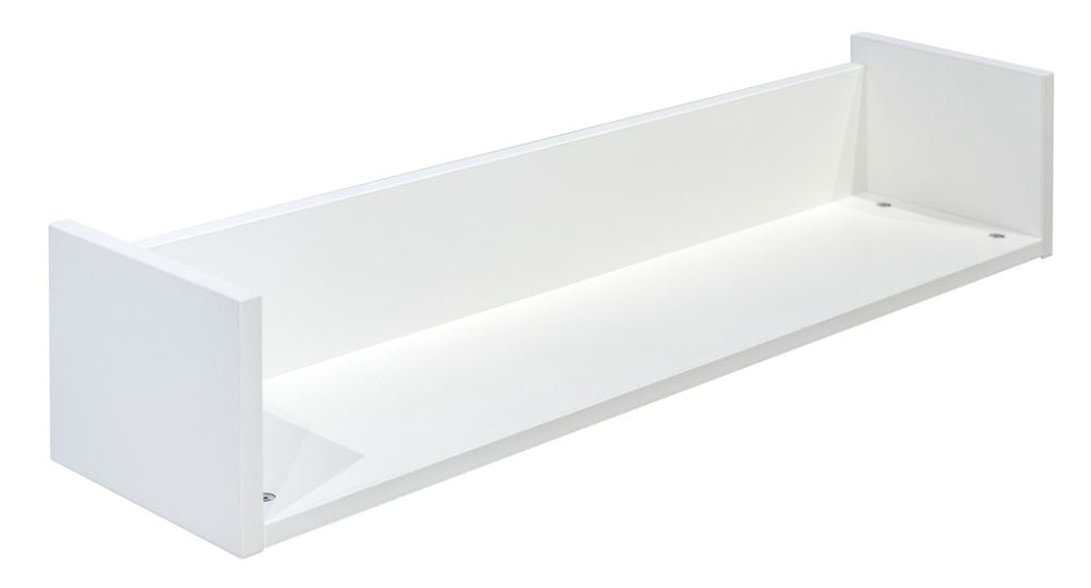 O material de base da prateleira é uma placa de mobiliário laminada certificada de 18 mm de espessura com uma superfície branca.