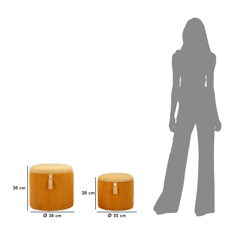 Pufe com Recipiente Bolzano Senape Conjunto 2 Un. Cm ø 38x38-32x28