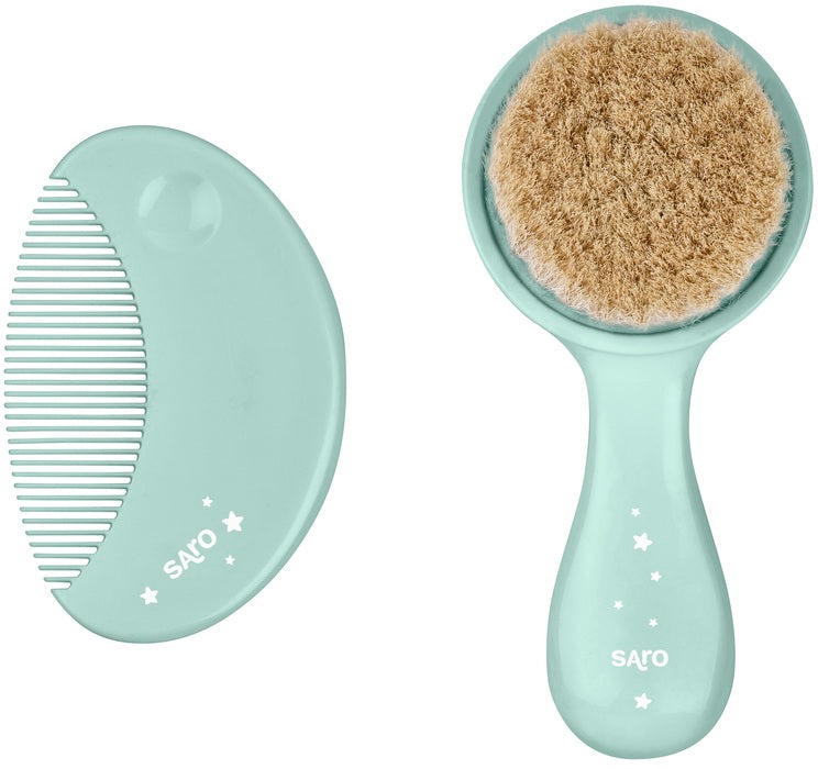 Saro - Escova de cerdas naturais e pente para o bebé Hortelã